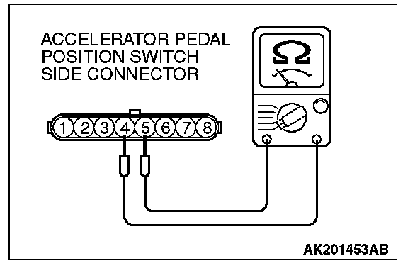 2. Check continuity between terminal No. 4 (accelerator pedal position switch) and No. 5 (sensor earth) of the connector.