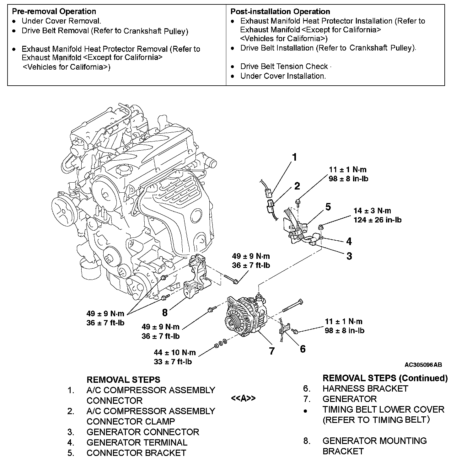 REMOVAL AND INSTALLATION <2.4L ENGINE>