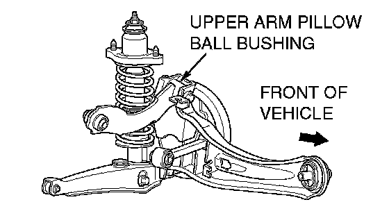 2. Move the upper arm up and down with your hands to check for an excessive play in the axial direction of the pillow ball bushing. If there is an excessive play, replace the upper arm.