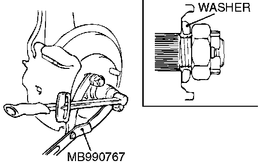 2. Using special tool MB990767, tighten the drive shaft nut to the specified torque.