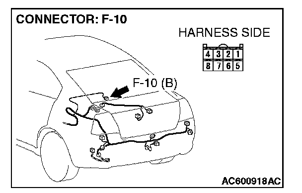 STEP 4. Check the wiring harness between navigation unit connector F-10 (terminal 7) and power train control module connector B-19 (terminal 14).