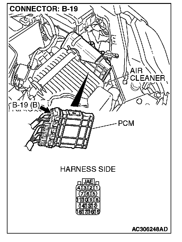STEP 3. Check navigation unit connector F-10 and power train control module connector B-19 for loose, corroded or damaged terminals, or terminals pushed back in the connector.