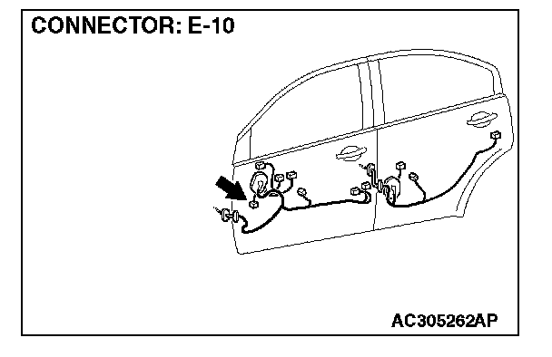STEP 2. Check front door speaker (LH) connector E-10 and multi-center display connector C-33 for loose, corroded or damaged terminals, or terminals pushed back in the connector.
