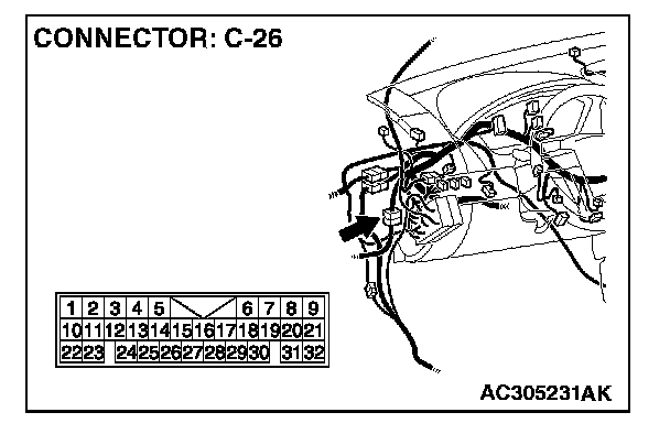NOTE: Also check intermediate connector C-26 for loose, corroded, or damaged terminals, or terminals pushed back in the connector. If intermediate connector C-26 is damaged, repair or replace the connector as described in Harness Connector Inspection.
