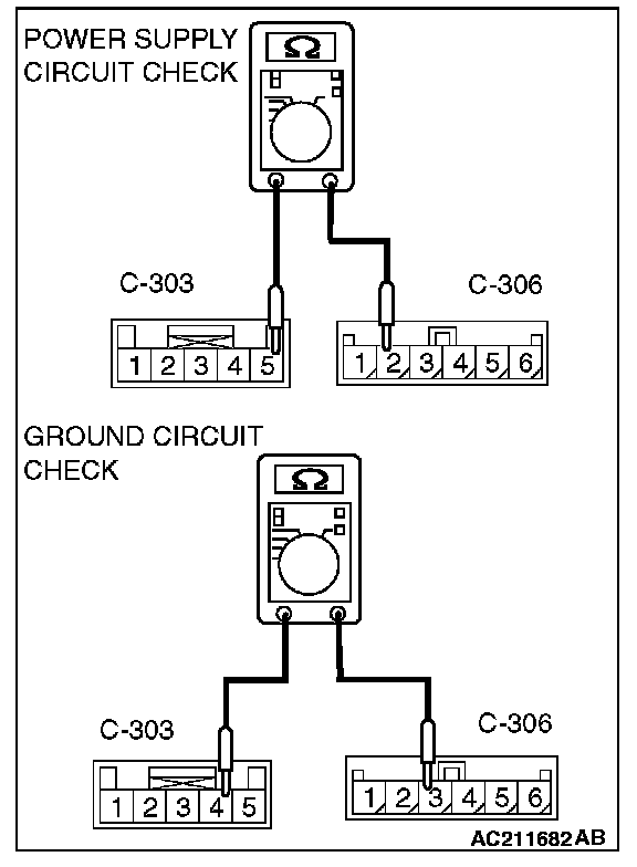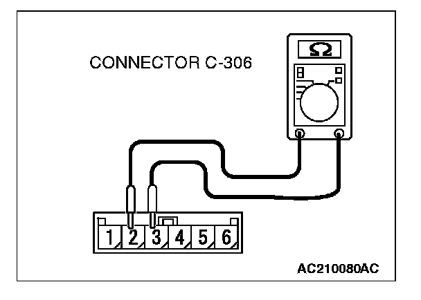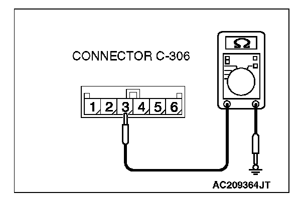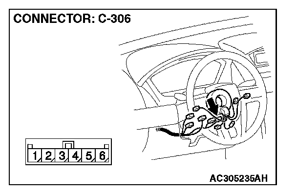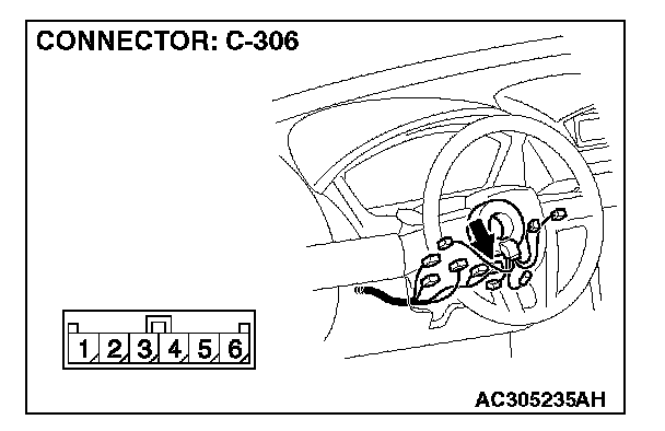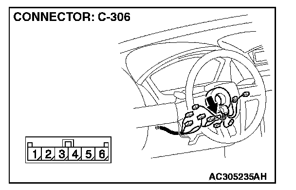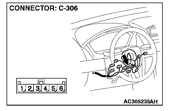 STEP 7. Measure the resistance between the clock spring connector C-306 terminals.