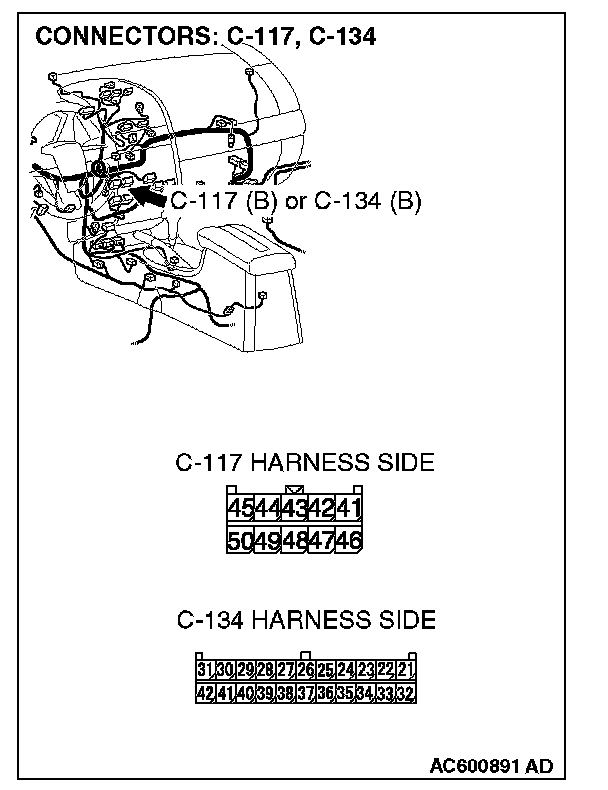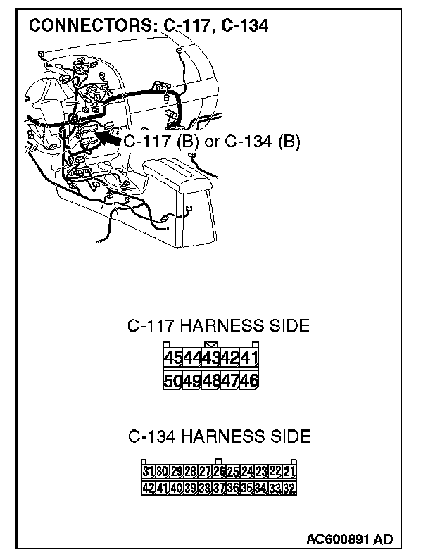 STEP 3. Check the wiring harness between radio, CD player and CD changer connector C-117