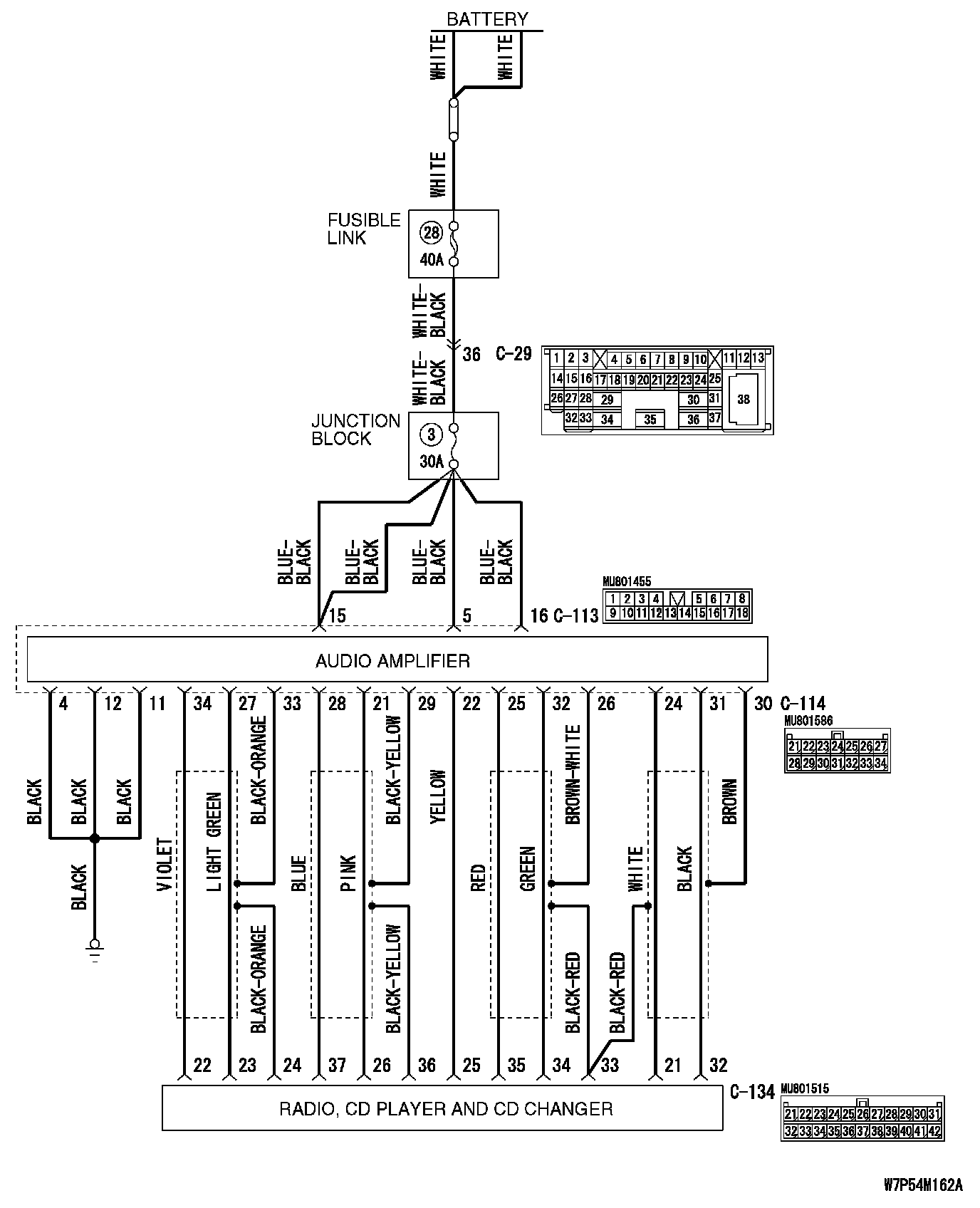 Q: Are radio, CD player and CD changer connector C-134 and audio amplifier connector C-114 in good condition?
