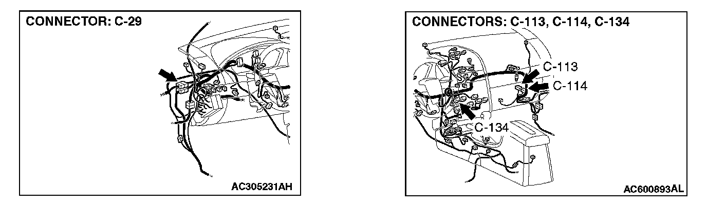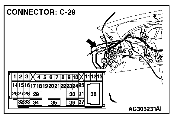 NOTE: Also check intermediate connector C-29 for loose, corroded, or damaged terminals, or terminals pushed back in the connector. If intermediate connectors C-29 is damaged, repair or replace the connector as described in Harness Connector Inspection.