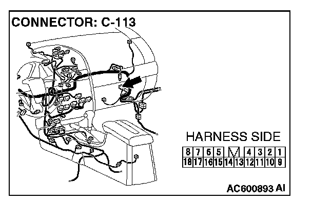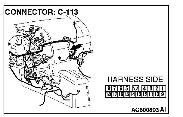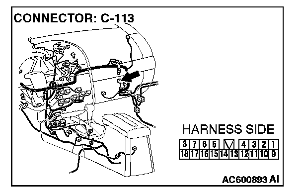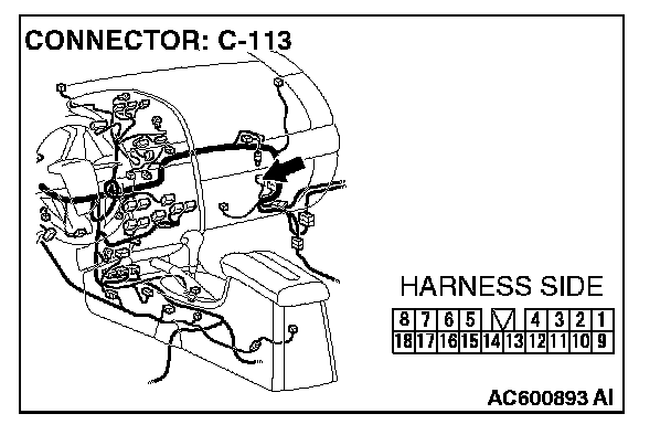 STEP 2. Check audio amplifier connector C-113 for loose, corroded or damaged terminals, or terminals pushed back in the connector.