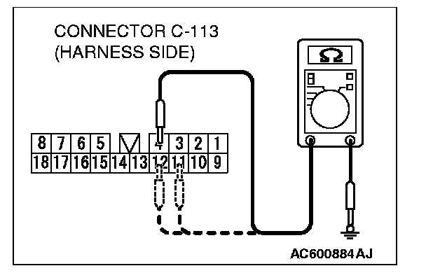 STEP 6. Check the wiring harness between audio amplifier connector C-113 (terminal 4, 11 and 12) and ground.