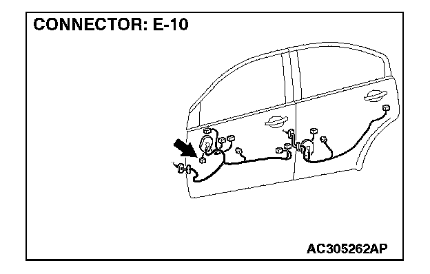 STEP 9. Check front door speaker (LH) connector E-10 and audio amplifier connector C-113 for loose, corroded or damaged terminals, or terminals pushed back in the connector.