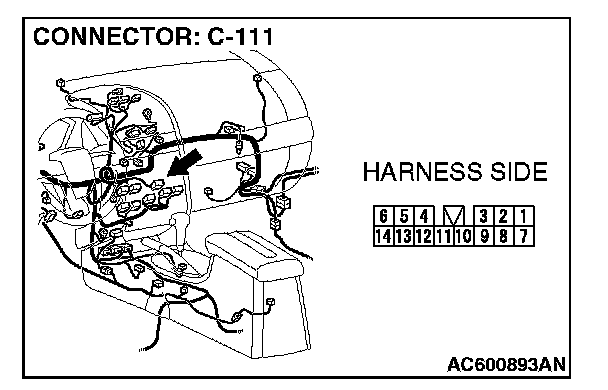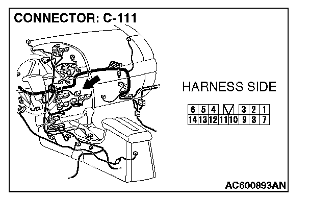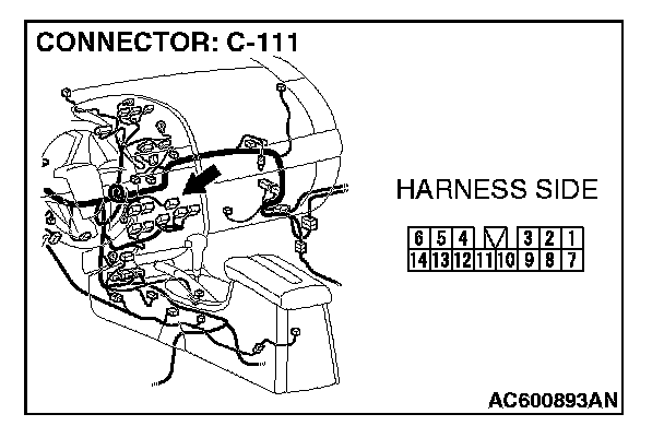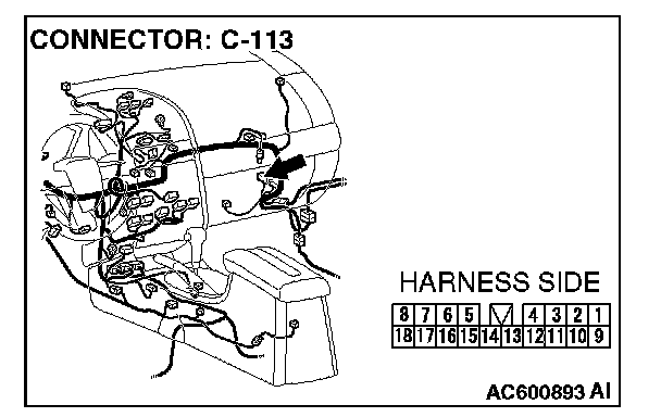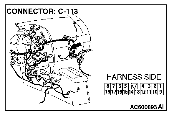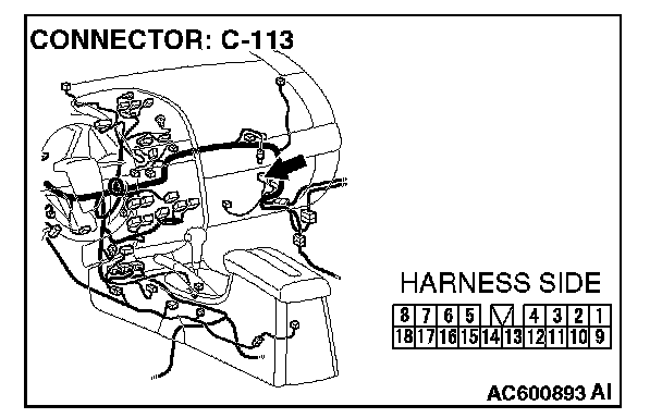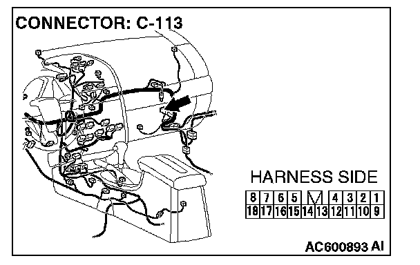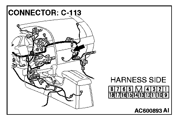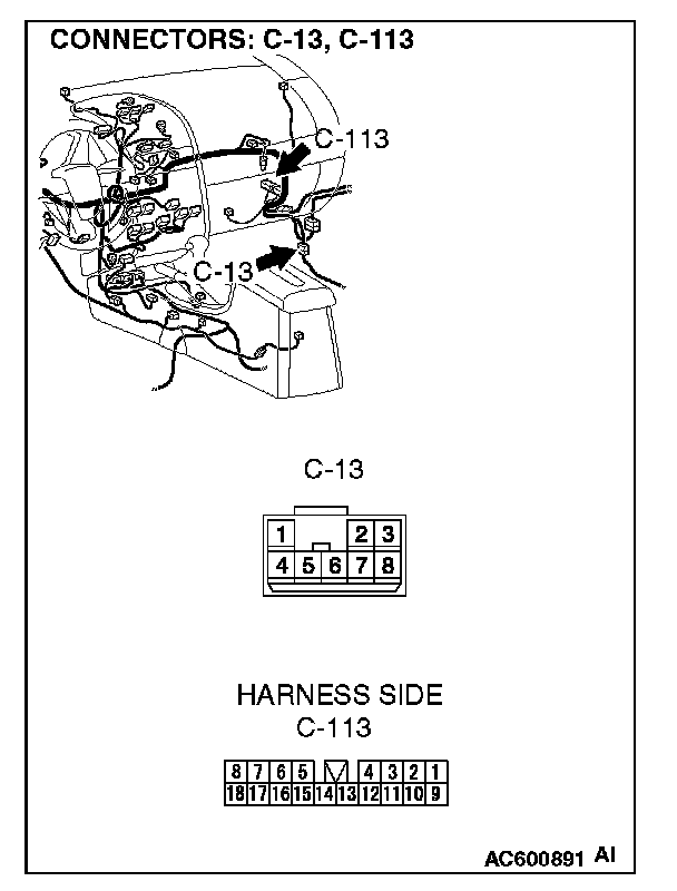 NOTE: Also check intermediate connector C-13 for loose, corroded, or damaged terminals, or terminals pushed back in the connector. If intermediate connector C-13 is damaged, repair or replace the connectors as described in Harness Connector Inspection.