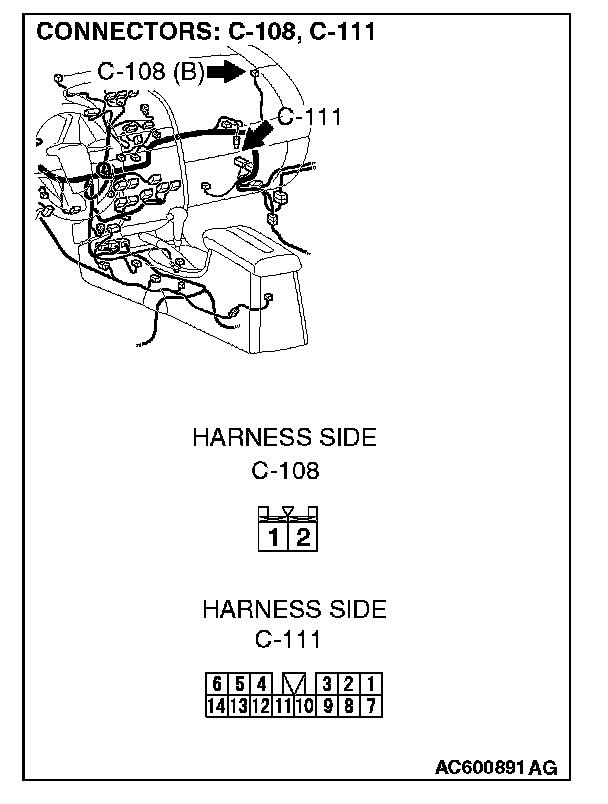 Q: Are harness connectors C-108 and C-111 in good condition?