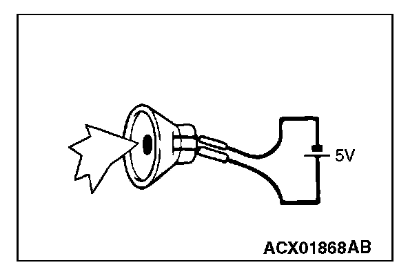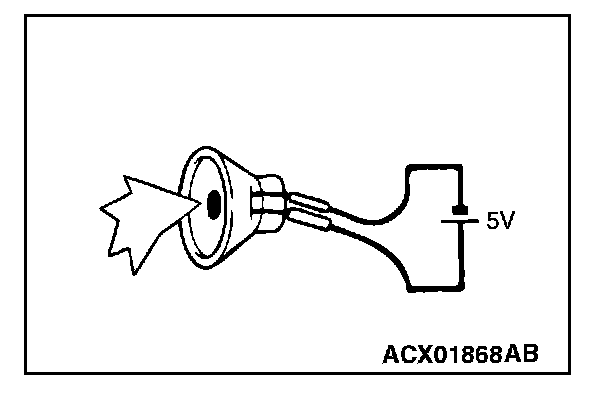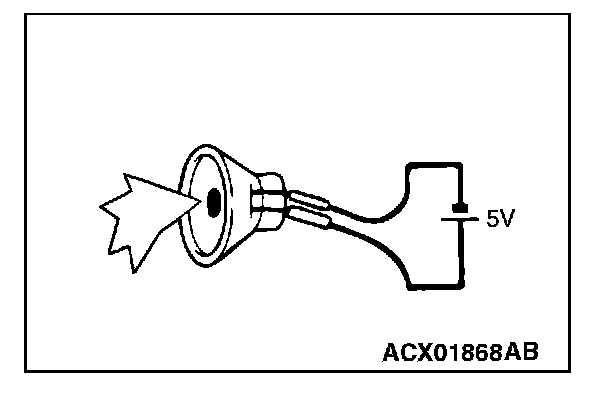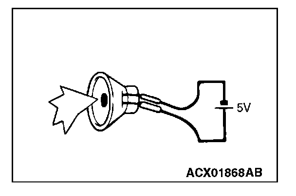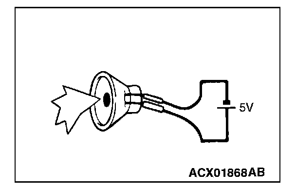 2. Check that the tweeter (RH) generates noise when a five-volt voltage is applied on the tweeter (RH) terminal.