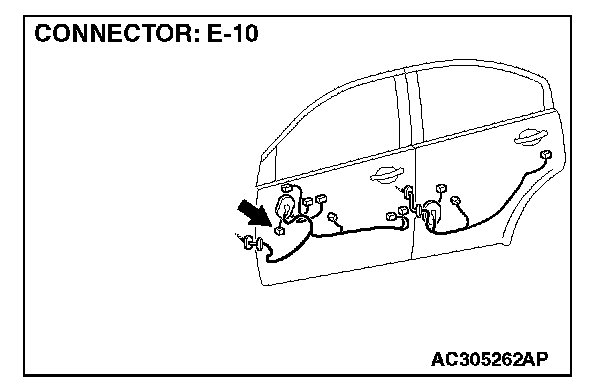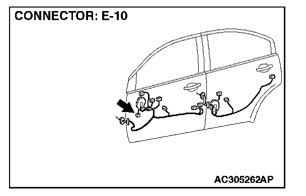 STEP 10. Check the wiring harness between front door speaker (LH) connector E-10 (terminals 1 and 2) and audio amplifier connector C-113 (terminals 8 and 18).