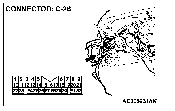 NOTE: Also check intermediate connector C-26 for loose, corroded, or damaged terminals, or terminals pushed back in the connector. If intermediate connector C-26 is damaged, repair or replace the connector as described in Harness Connector Inspection.