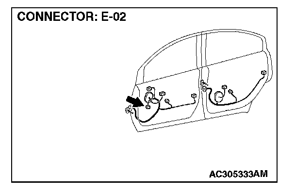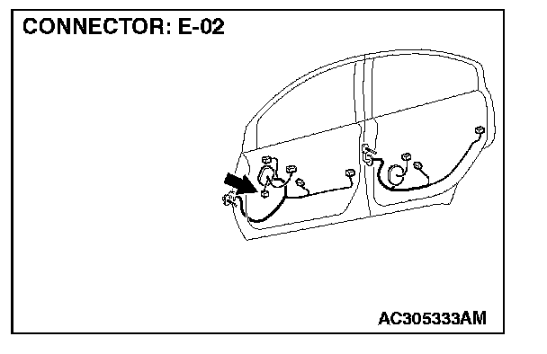 STEP 12. Check front door speaker (RH) connector E-02 and audio amplifier connector C-113 for loose, corroded or damaged terminals, or terminals pushed back in the connector.