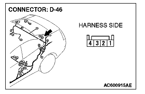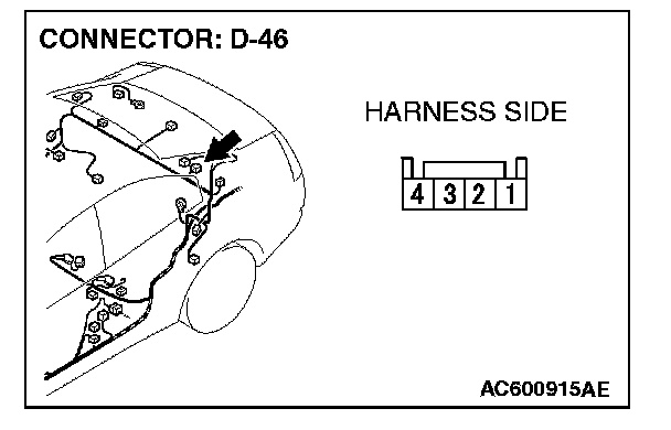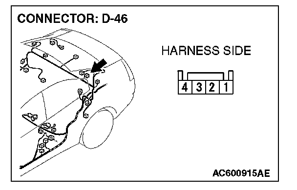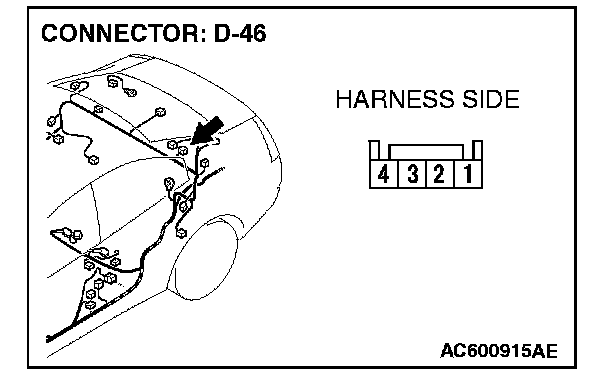 STEP 22. Check the wiring harness between rear speaker (LH) connector D-46 (terminals 1 and 4) and radio, CD player and CD changer connector C-111 (terminals 2 and 8).