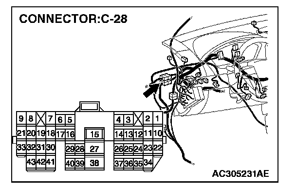 NOTE: Also check intermediate connector C-28 for loose, corroded, or damaged terminals, or terminals pushed back in the connector. If intermediate connector C-28 is damaged, repair or replace the connectors as described in Harness Connector Inspection.