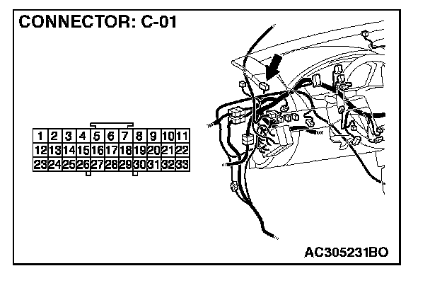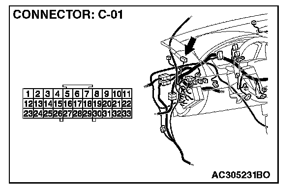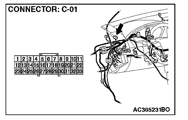 STEP 23. Check joint connector C-01 for loose, corroded or damaged terminals, or terminals pushed back in the connector.