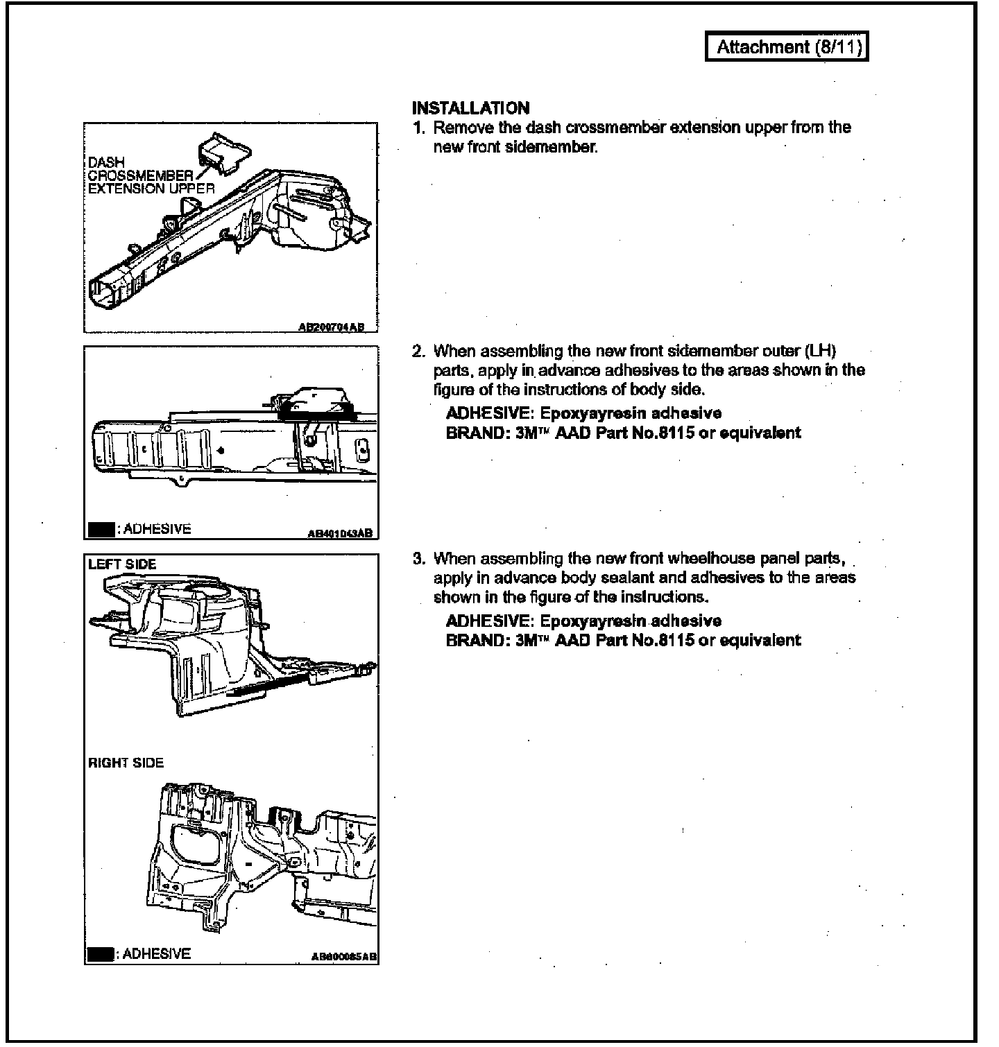 Add the page shown to page 3-7 of the 2004 Galant Body Repair Manual.