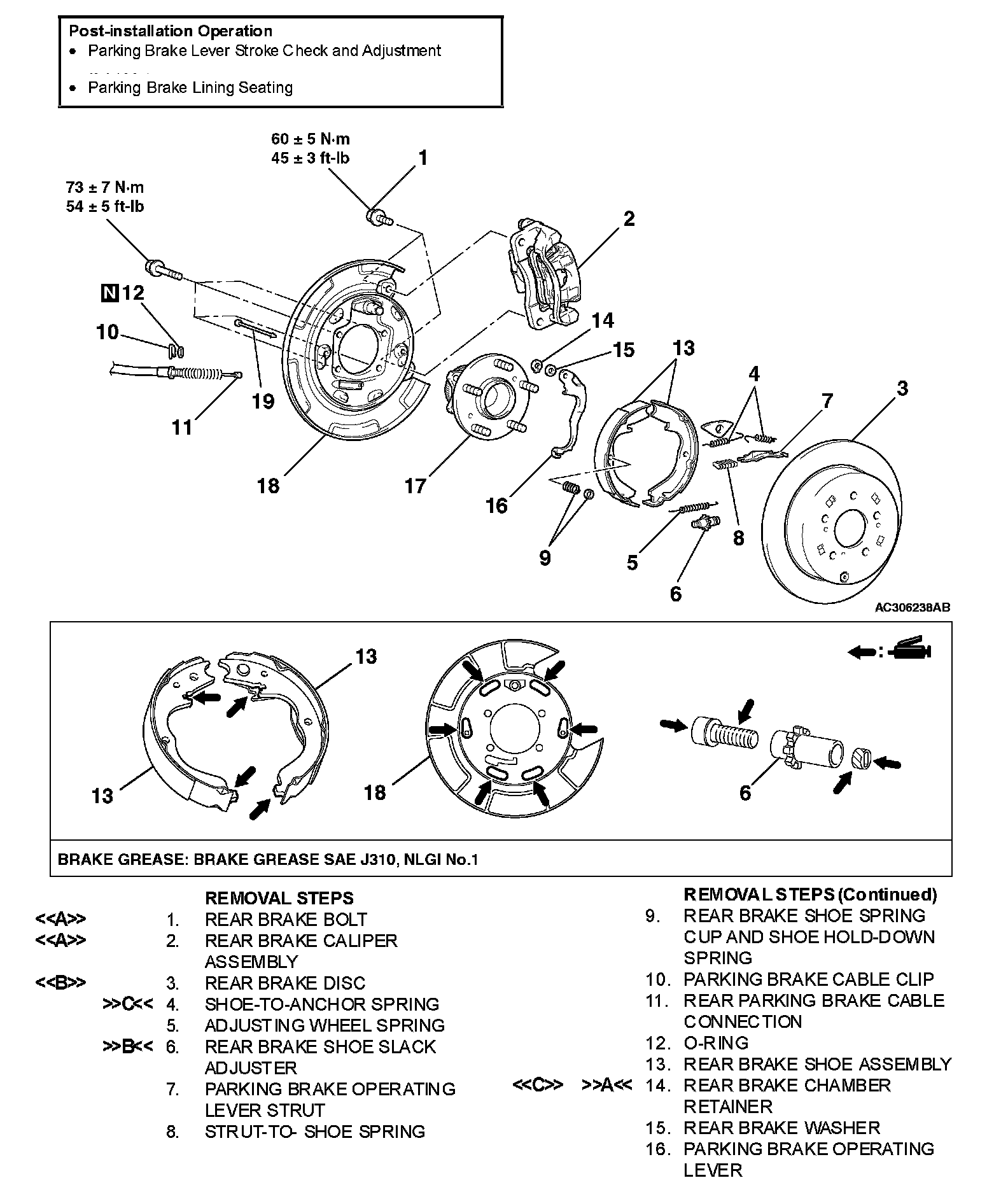 PARKING BRAKE LINING AND BRAKE DRUM CHECK