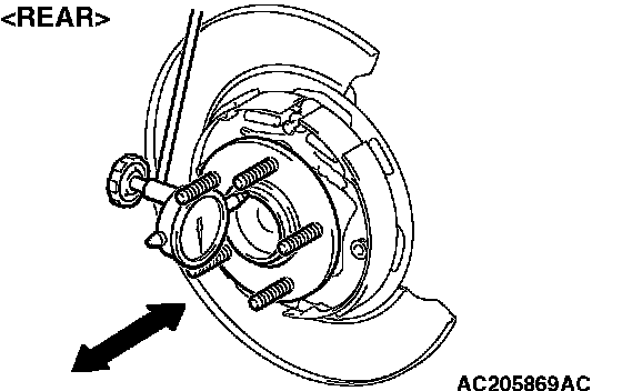 2) Place a dial gauge as shown, and measure the end play while moving the hub in the axial direction.