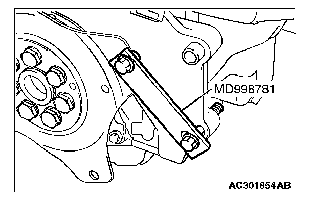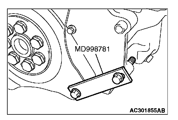1. Use special tool MD998781 to secure the A/T drive plate.