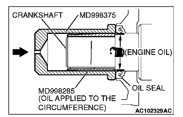 1. Apply a small amount of engine oil to the outer diameter of special tool MD998285 and install it to the crankshaft.