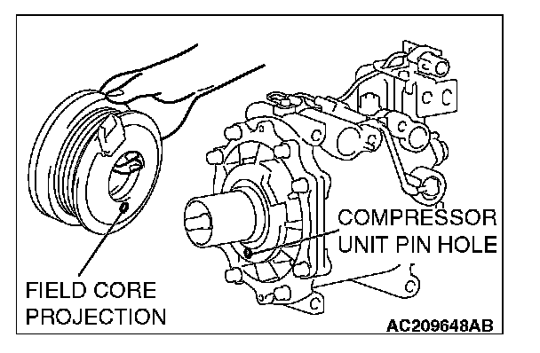 Line up the pin hole on the compressor unit with the field core projection and attach.