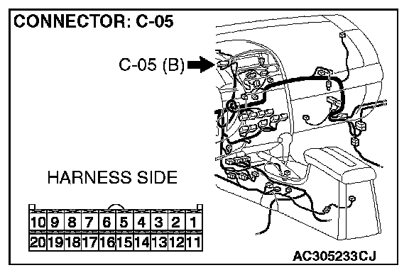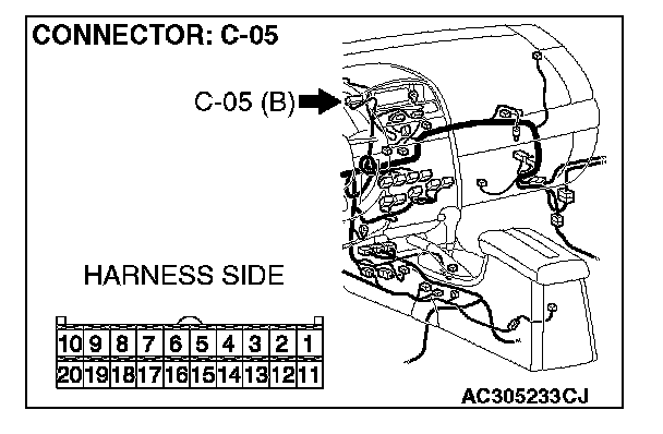 STEP 11. Check the multi-center display unit (middle grade type) connector C-05 for loose, corroded or damaged terminals, or terminals pushed back in the connector.