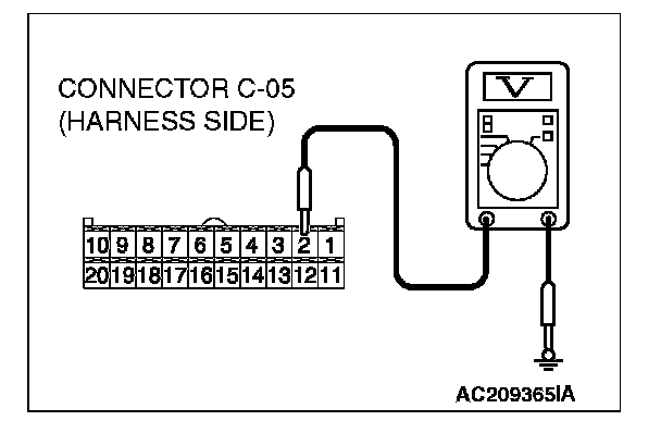 STEP 1. Check the multi-center display unit (middle grade type) ground circuit. Measure the resistance at the multi-center display unit (middle grade type) connector C-05.