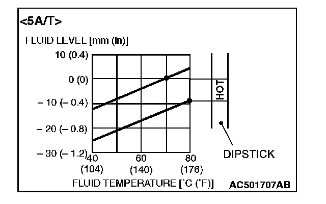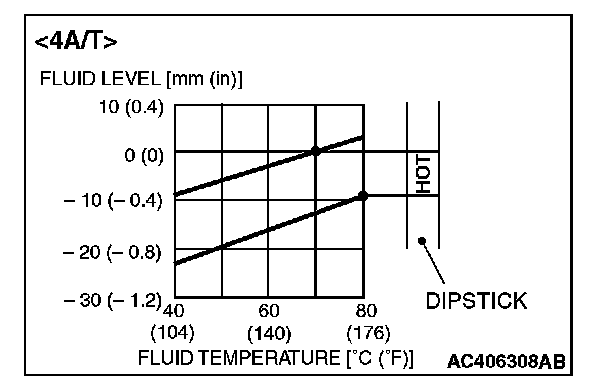 NOTE: If it takes some amount of time until the transmission fluid reaches its normal operating temperature [70 - 80°C (158 - 176°F)], check the transmission fluid level.