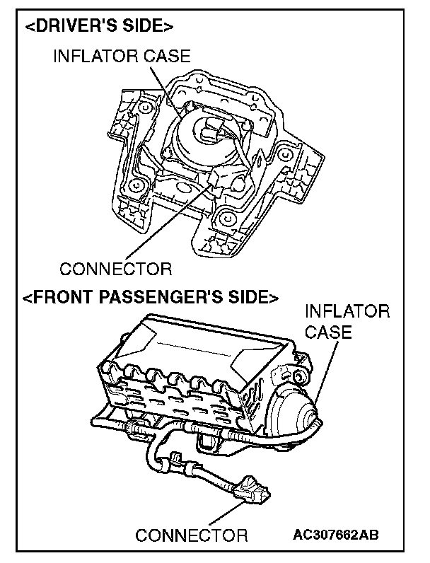 3. Check the air bag inflator case for dents, cracks or deformation.