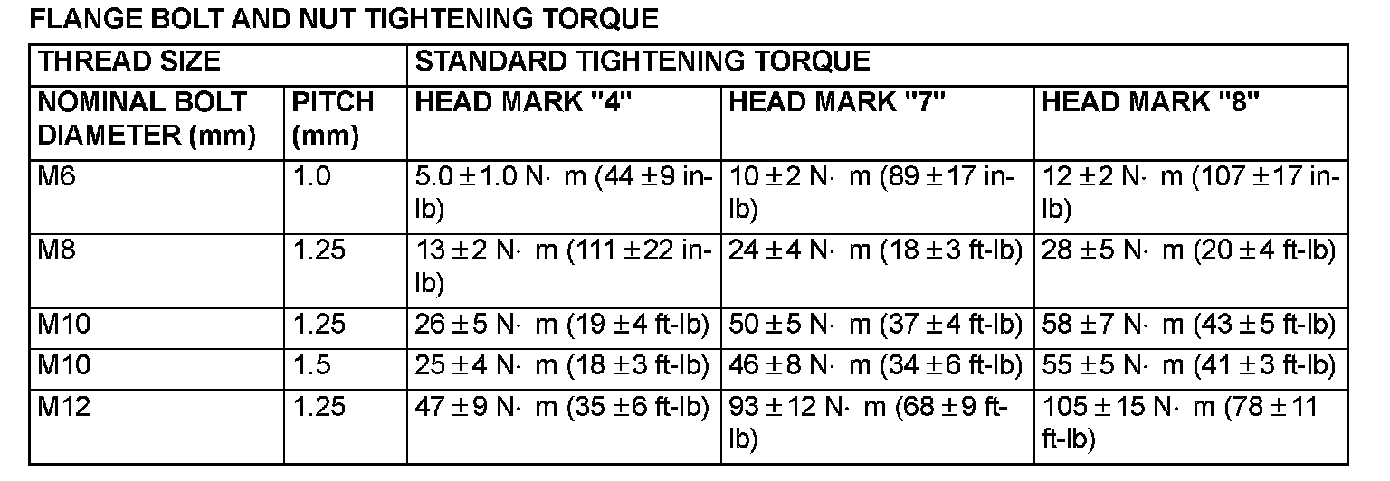 FLANGE BOLT AND NUT TIGHTENING TORQUE