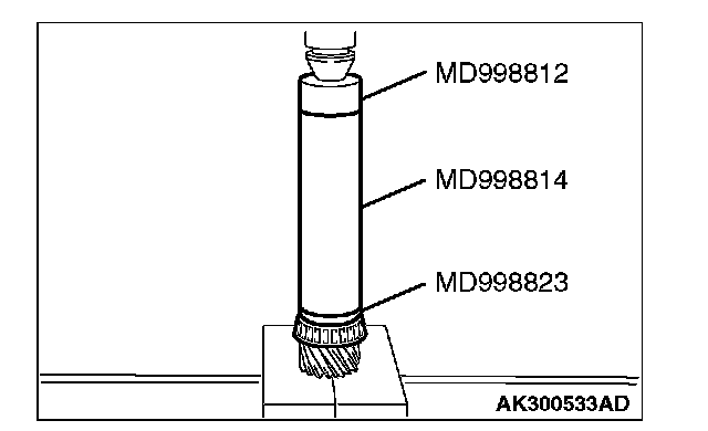 2. Using special tools MD998823, MD998812 and MD998814, press in the taper roller bearing.