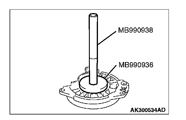 Use the special tools MB990936 and MB990938 to tap the outer race in the bearing retainer.