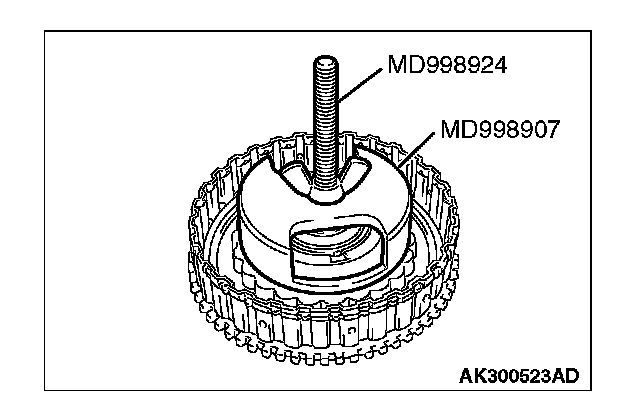 1. Set special tools MD998907 and MD998924 as shown in the illustration.