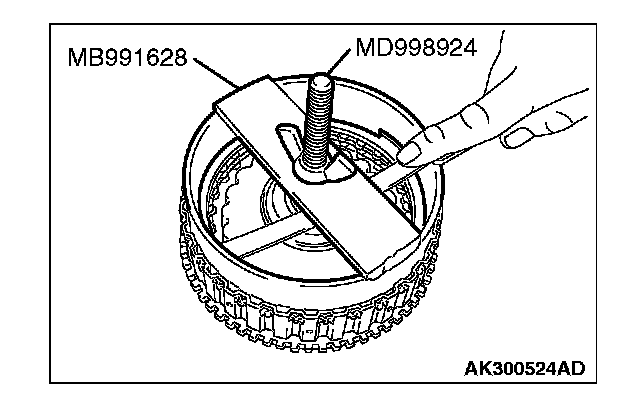 2. Set special tools MB991628 and MD998924 as shown in the illustration, and then compress the clutch element.