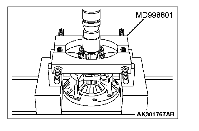 1. Support the taper roller bearing with special tool MD998801, and then set them on the press.