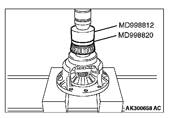 Using special tools MD998812 and MD998820, press in the taper roller bearing.
