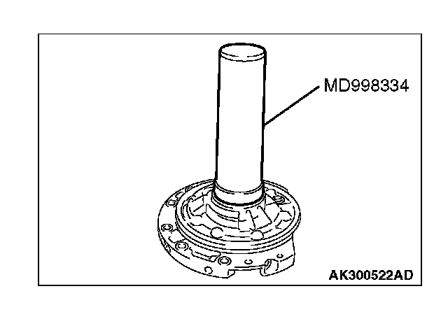 2. Use special tool MD998334 to tap the oil seal in the oil pump body.