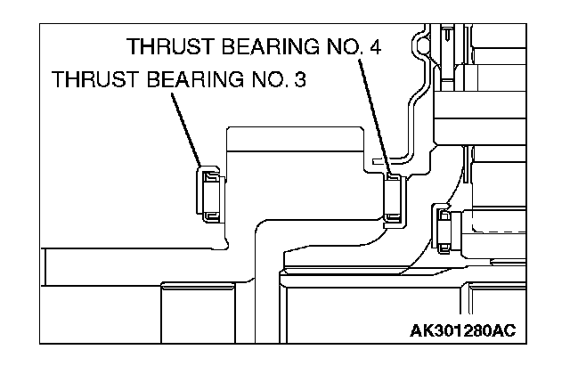 Check the installation direction of thrust bearings number 3 and 4, and install them as shown.