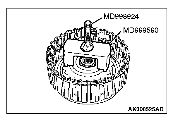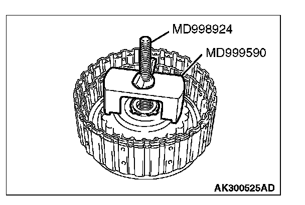 2. Set special tools MB991789 and MD998924 as shown in the illustration, and compress the clutch element.