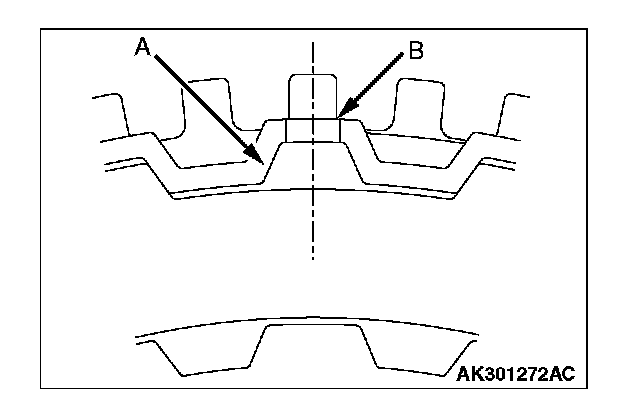 2. Install the clutch reaction plate in the direction shown. Install it the same as the clutch plate, so that the places with no teeth (marked "A") are aligned with the holes in the retainer (marked "B").