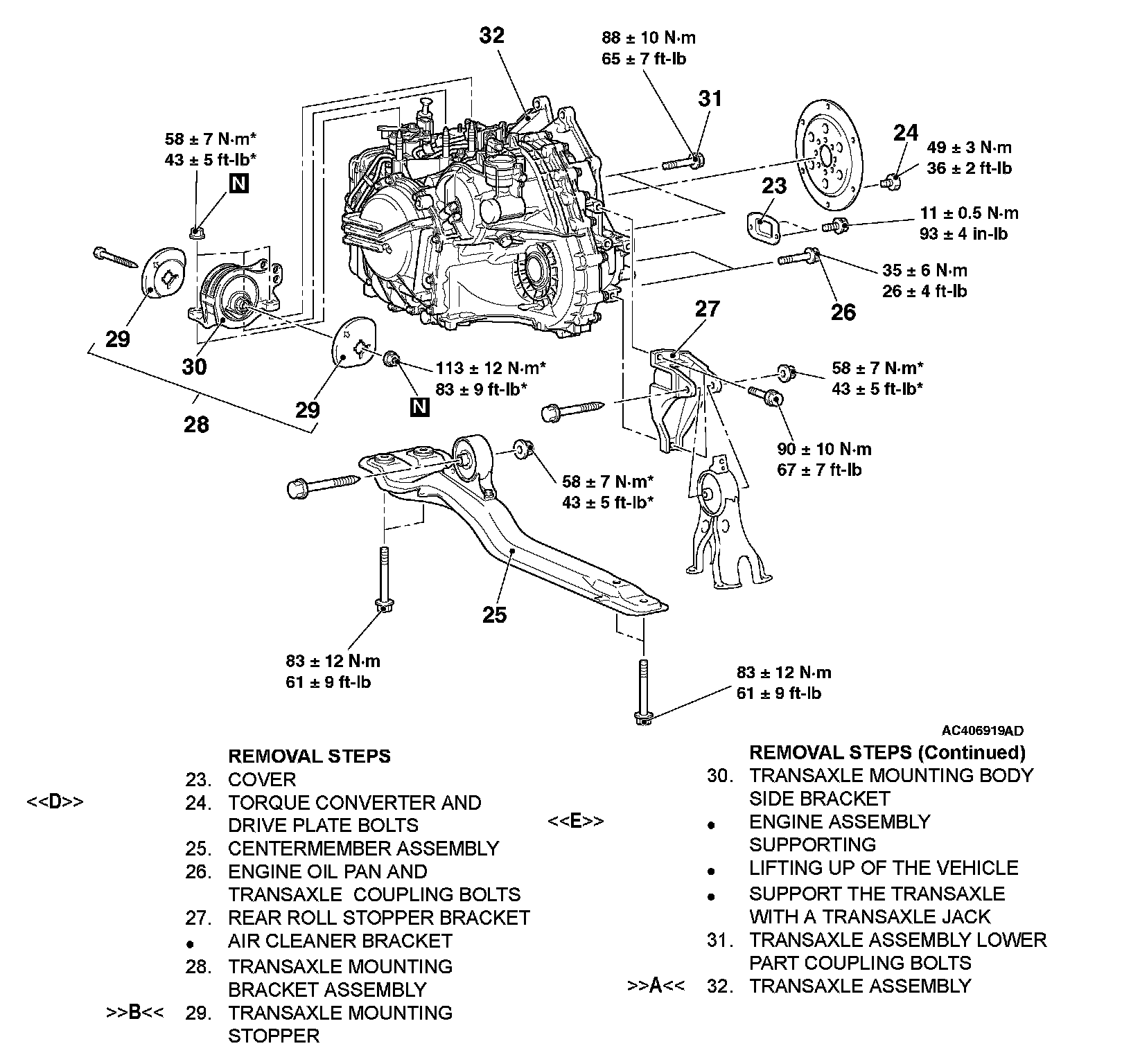 >>B<< TRANSAXLE MOUNTING STOPPER INSTALLATION