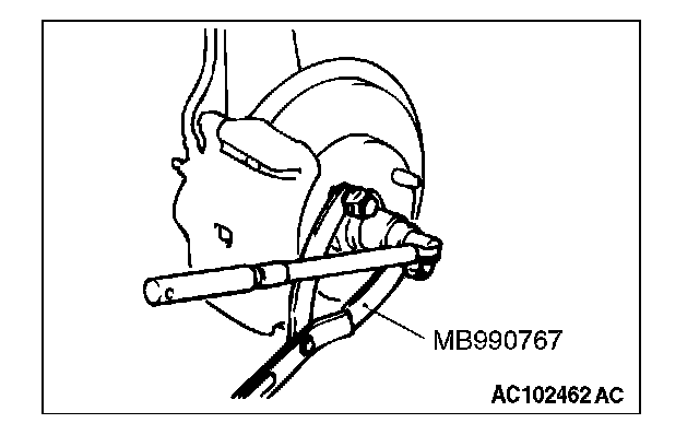 Use special tool MB990767 to fix the hub and remove the drive shaft nut.
