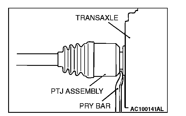 ^ Do not pull on the drive shaft; doing so will damage the PTJ; be sure to use the pry bar.