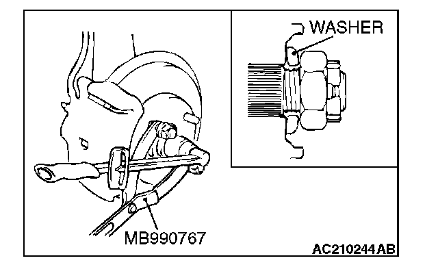 2. Using special tool MB990767, tighten the drive shaft nut to the specified torque.