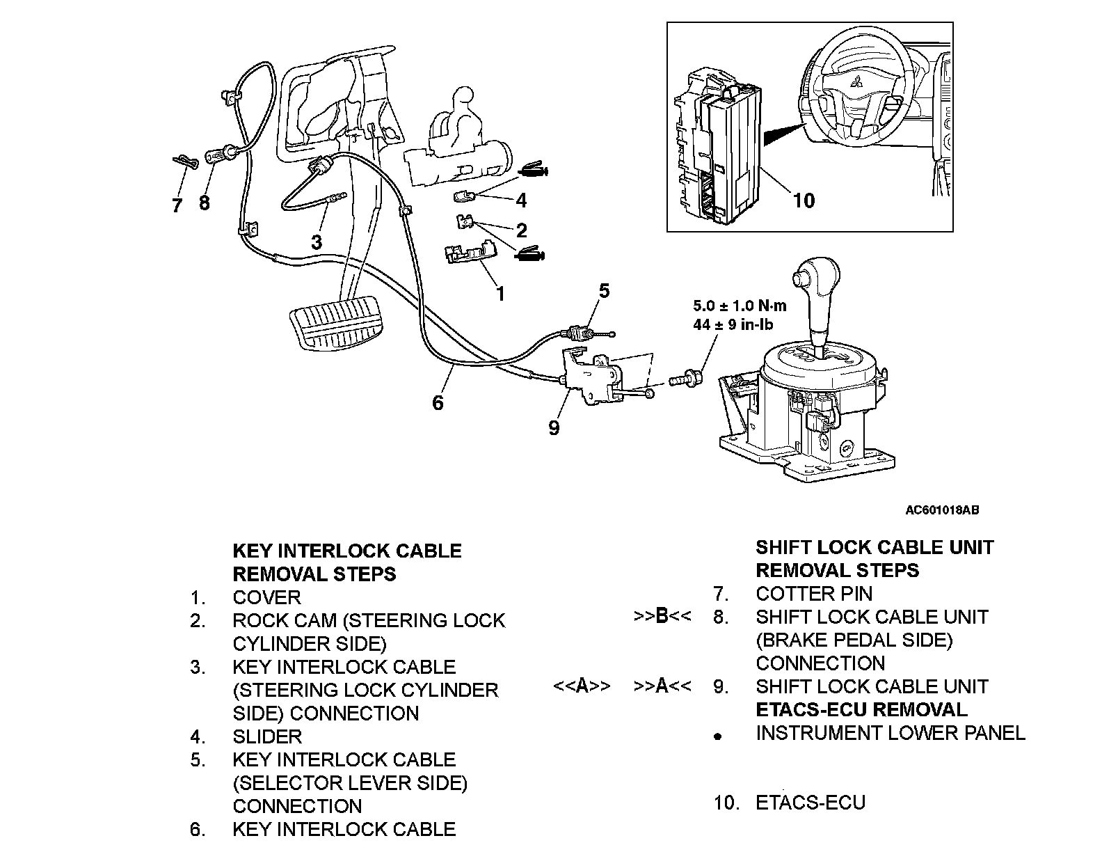 <> SHIFT LOCK CABLE UNIT REMOVAL